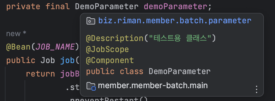 @Description("테스트용 클래스")