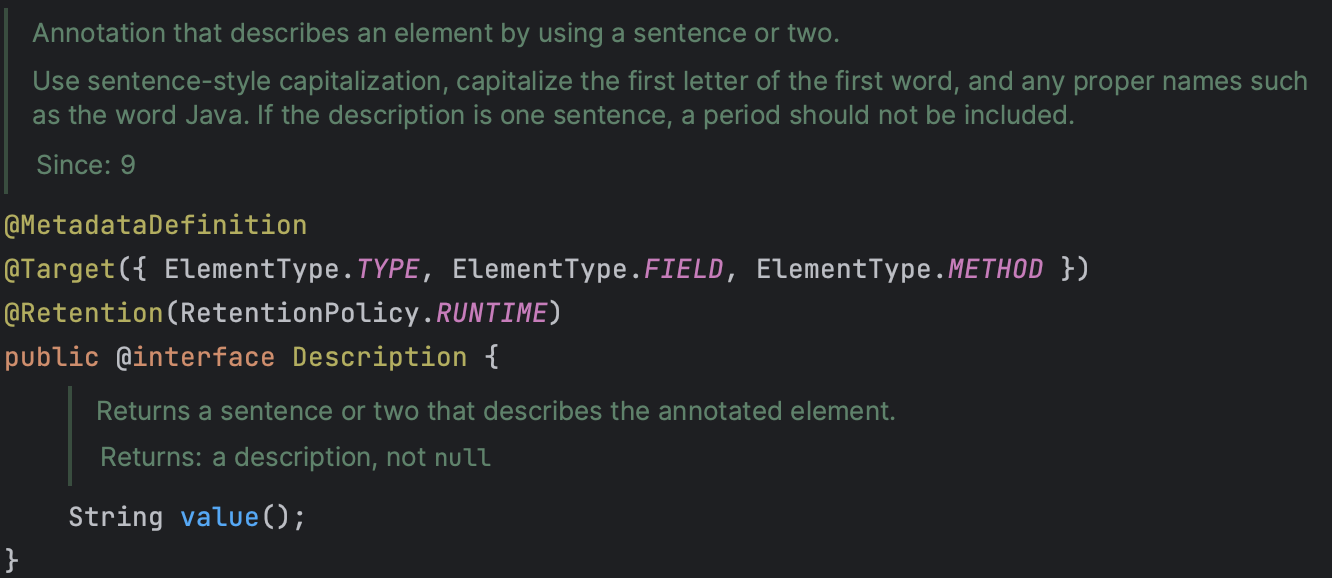 전통적인 JavaDoc 은 아래와 같습니다.
